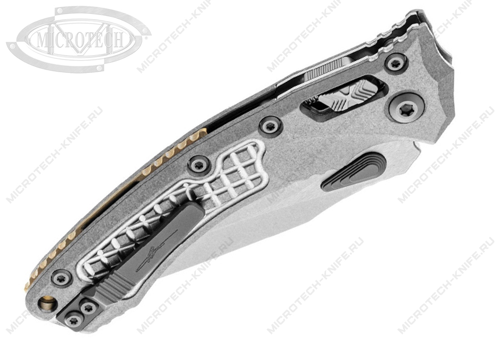 Модель Microtech 137RL-10FRMS1 Amphibian Ram-Lok Titanium имеет титановую рукоять и финишную обработку клинка stonewash.