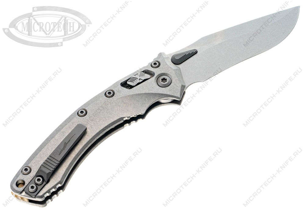 Модель Microtech 137RL-10MS1 Amphibian Ram-Lok Titanium имеет титановую рукоять и финишную обработку клинка stonewash.
